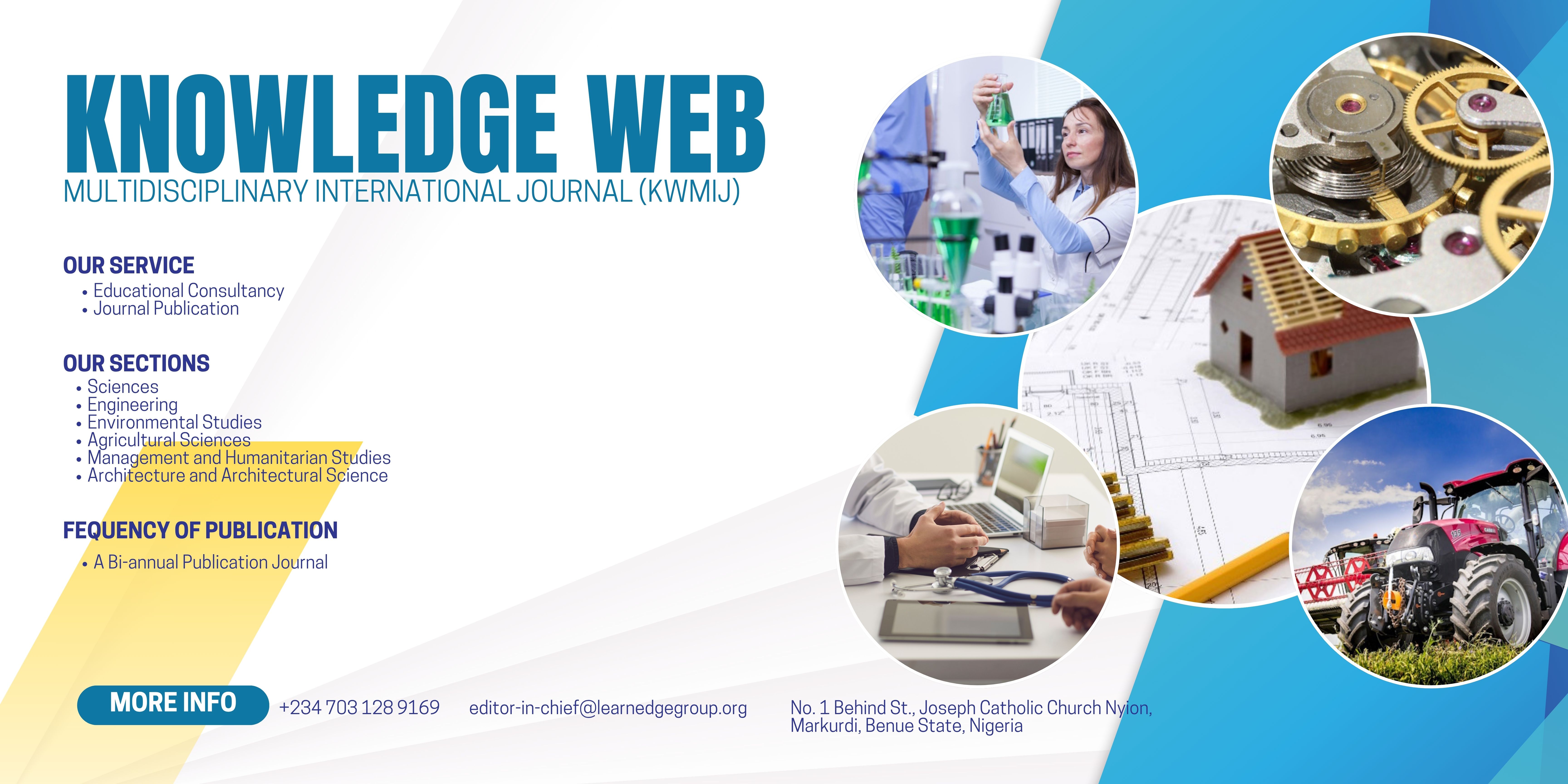 Welcome to the Knowledge Web Multidisciplinary International Journal (KWMIJ), the cornerstone of a dynamic family of journals dedicated to advancing global scholarship across diverse fields. As an umbrella journal, KWMIJ unites five specialized sections: Sciences, Engineering, Environmental Studies, Medical and Health Science, Architecture and Architectural Science, Agricultural Sciences, and Management and Humanitarian Studies to foster interdisciplinary collaboration and innovation. Together, we span the realms of Science, Technology, Engineering, Management, Humanitarian Studies, and Environmental and Agricultural Sciences, weaving a "knowledge web" that connects ideas and impacts lives worldwide.